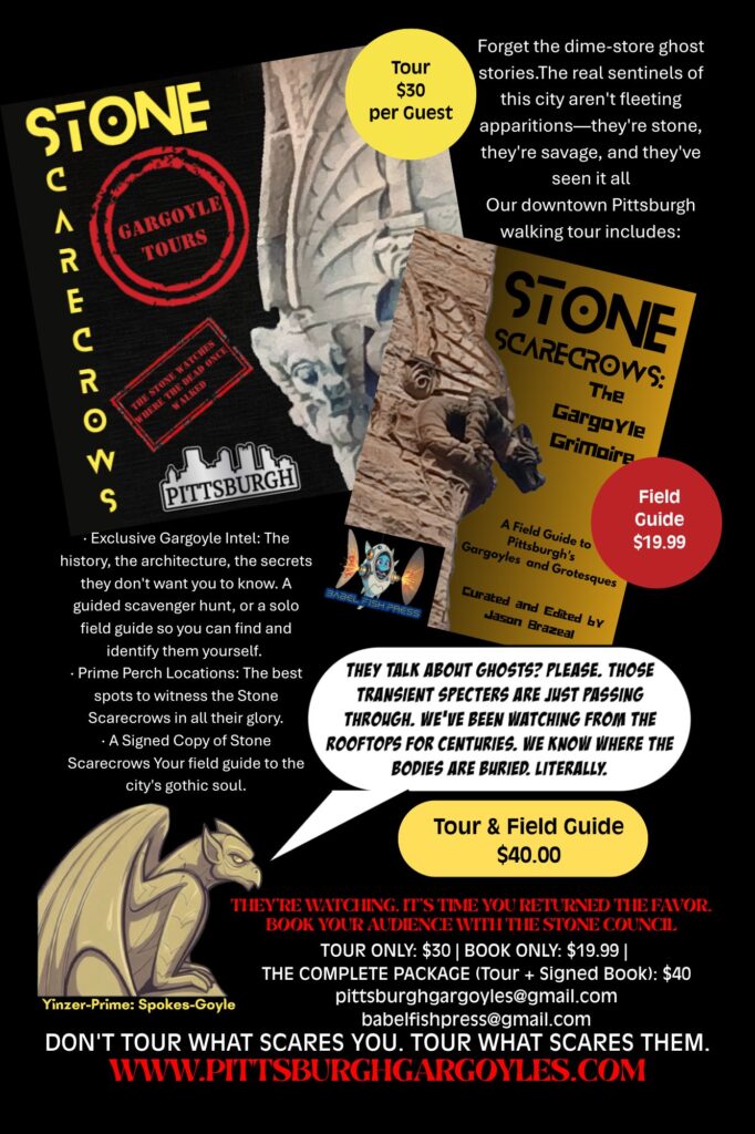 One hour.Thirty bones. We’ll walk the old tracks. Your guide will point out the Squealersโthe restless echoes that cling to the brick. We’ll introduce you to the garrison. You’ll learn why a gargoyle does what he has to. You’ll feel the city’s old, stone heart beat. Maybe get a little haunted. The weak need not apply.